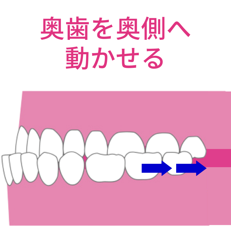 それにより空いたスペースに次の奥歯を動かし、さらに次の奥歯を動かします。