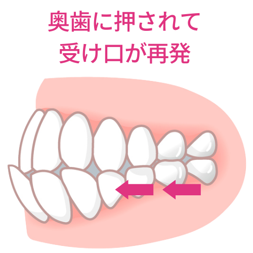 たとえ一時的に受け口が治ったとしても、奥歯をそのまま放置していると、またすぐに前歯が押し出されて、結局は受け口の状態に戻ってしまうのです。