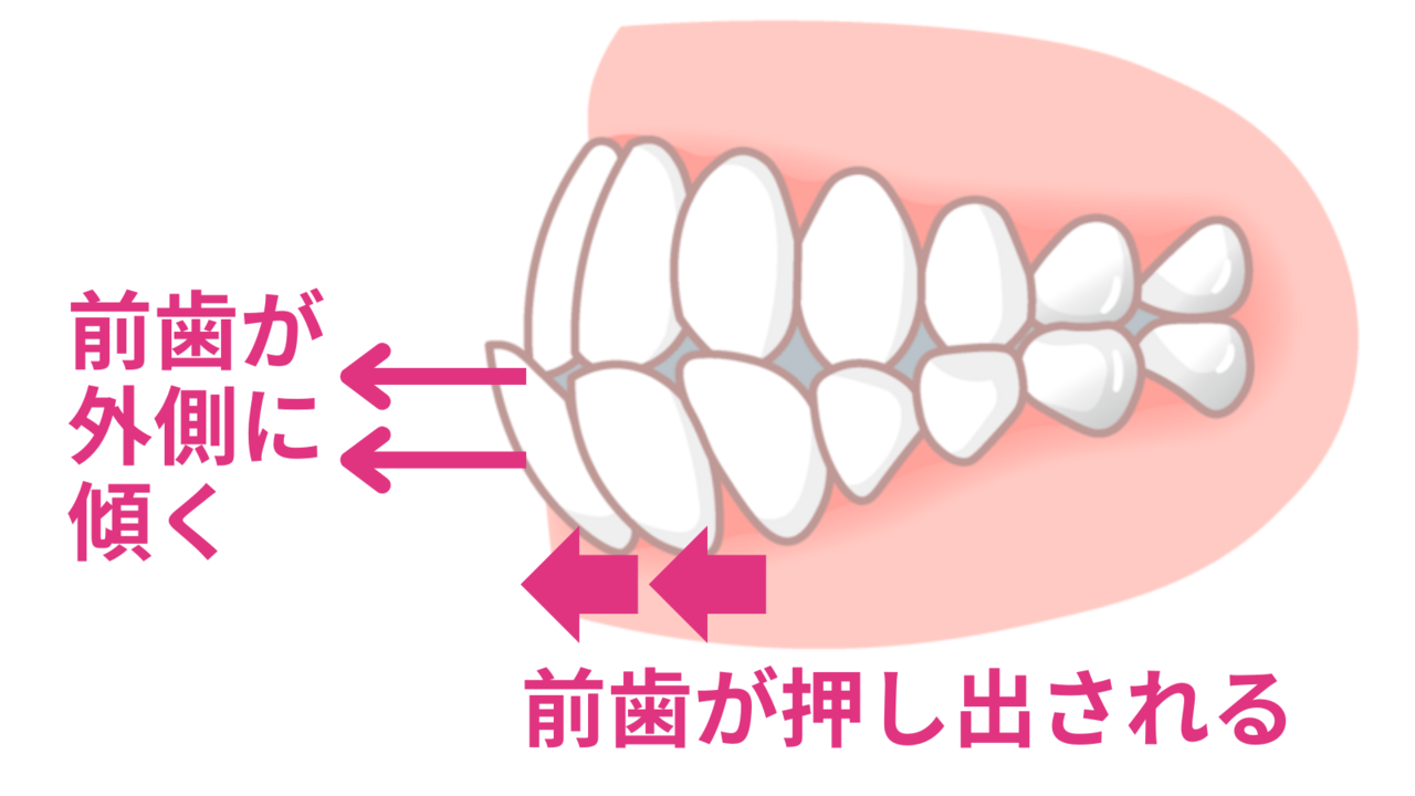しかも下の前歯が外側に押し出されると、それに伴って奥歯も移動してしまうため、多くの場合、奥歯の噛み合わせもおかしくなっています。