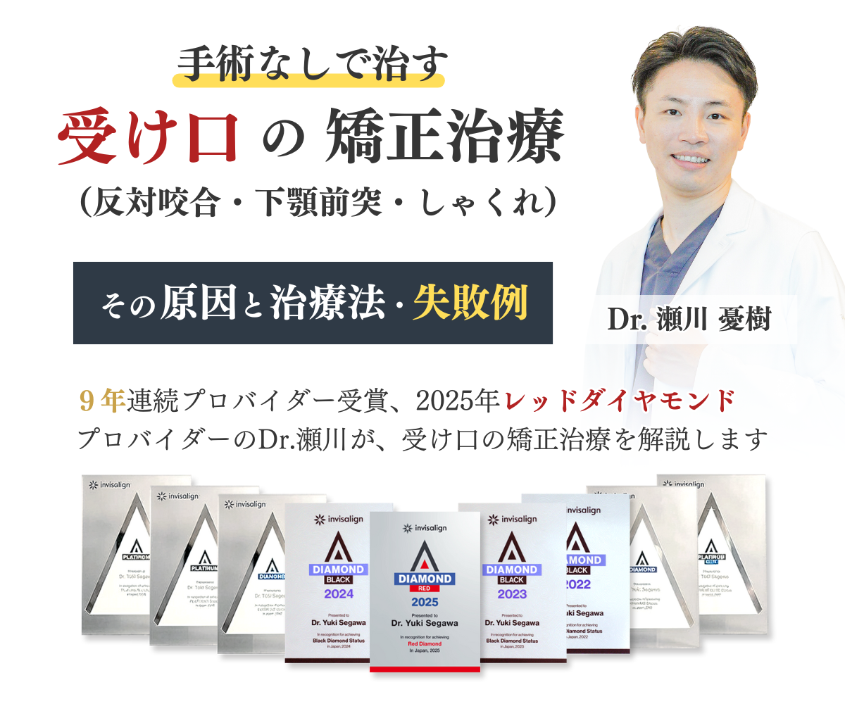無料の矯正相談を実施中。ご相談にのるのは、国内最高峰「インビザライン・トッププロバイダーズ」に選出、最高ランク「レッドダイヤモンドプロバイダー」認定のDr.瀬川が率いる矯正専門の歯科医師たちです。