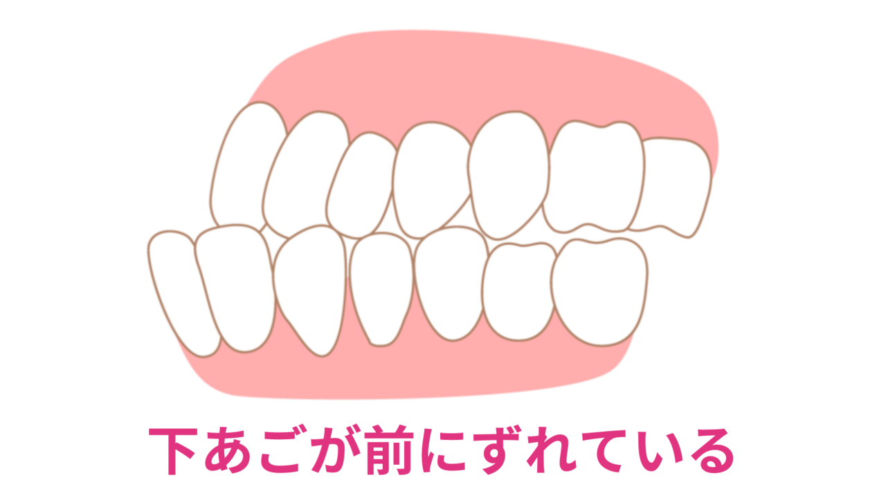 下図のように、下あごが全体的に前に出てしまったため受け口になってしまった、という状態です。