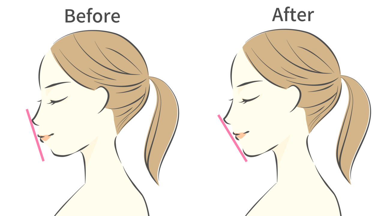 Eラインとは、鼻とあごの先端を結ぶラインのことです。唇がこのEライン内に収まると、横顔の美しさが際立ちます。