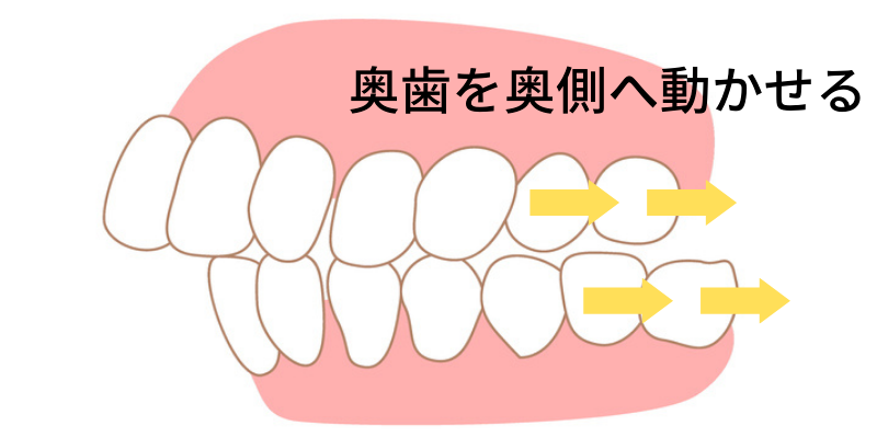 この奥歯を奥側へ動かす方法によって、前歯のスペースを確保することが可能です。